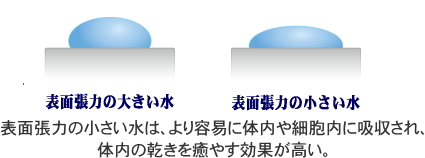 “フンザの水”の表面張力は68ダインと通常の水よりも低かった。