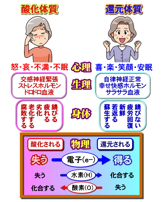 西洋医学の臓器レベルの対症療法(症状ごとに様々な医薬品を処方する)のような考え方ではなく、もっと深層の体内環境を整え細胞レベルの活動を活発にするために、『ミクロな水の流れを良くしながら、酸化・炎症を抑え「還元体質」に変える』というシンプルな健康法なのです。